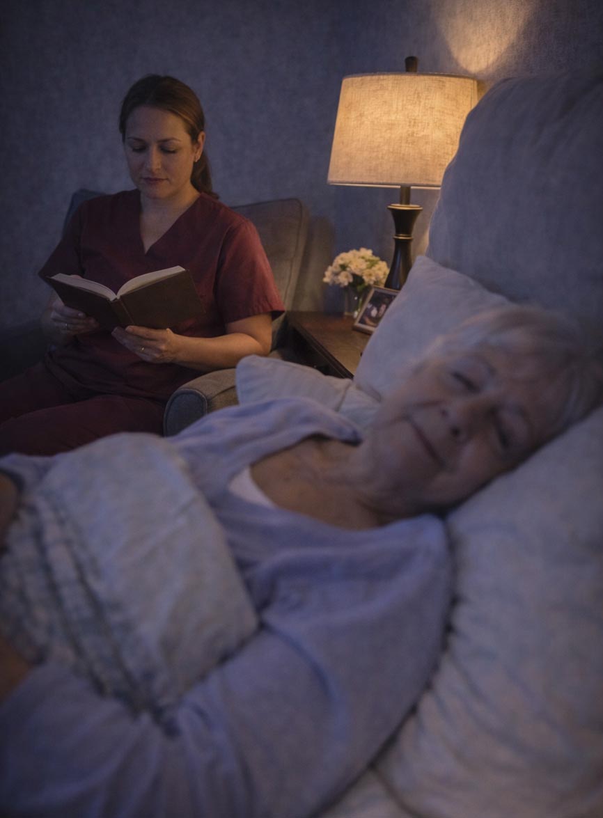 Caregivers remain alert and attentive overnight, providing supervision and assistance as needed.